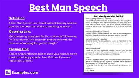 Brides.com gives the following examples: 'best boy' and all of us twenty years later: What to say in a best man speech (do’s and don’ts) a best man’s speech traditionally takes place at the wedding reception after the maid of honor gives her speech.