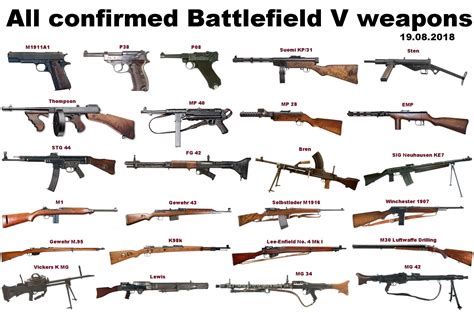 Below is a list of all the weapon types currently available in battlefield v. Best rate of fire(830rpm) of all the assault class weapons; If you miss the old front line pusher assault with its trusty smgs, the m1907 sf is the weapon for you.